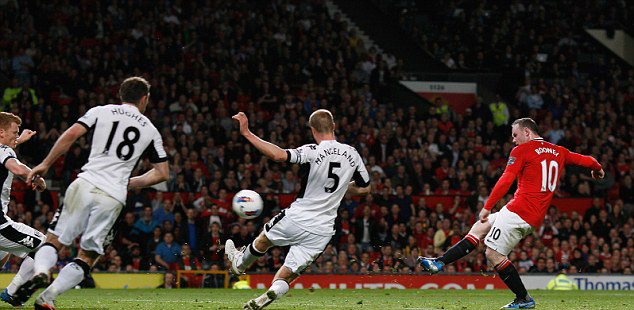 Tưởng như hiệp 1 sẽ kết thúc với tỷ số hòa thì Rooney đã mở tỷ số ở phút 42 bằng một pha dứt điểm gọn ghẽ